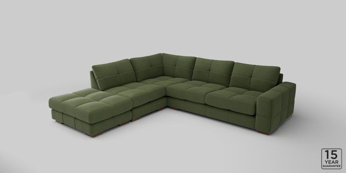 7.2.10 Brooke Deep Sit Large Open End Corner Chaise - Left Hand Ripple Chenille Mid Moss Green Large Square Angle - Mid | Made Click here to use our website with more accessibility support, for example screen readers