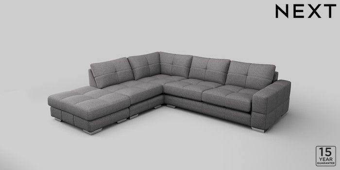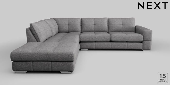 7.2.10 Brooke Deep Sit Large Open End Corner Chaise - Left Hand Studio Chenille Mid Grey Large Square Angle - Chrome Metal | Made Click here to use our website with more accessibility support, for example screen readers