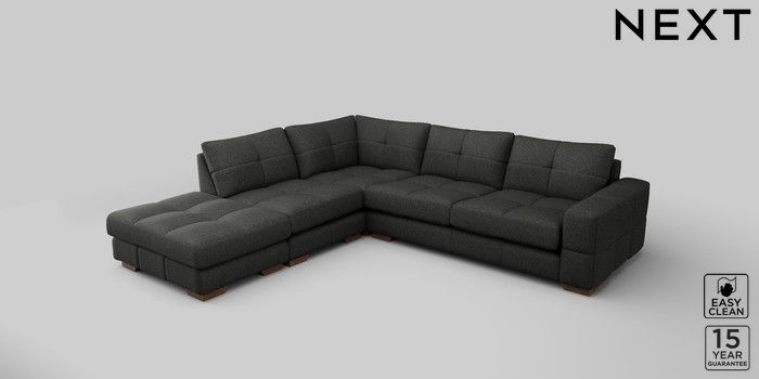 7.2.10 Brooke Deep Sit Large Open End Corner Chaise - Left Hand Tweedy Blend Easy Clean Charcoal Grey Large Square Angle - Mid | Made Click here to use our website with more accessibility support, for example screen readers