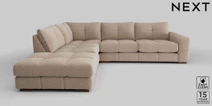 7.2.10 Brooke Deep Sit Large Open End Corner Chaise - Left Hand Tweedy Blend Easy Clean Light Dove Natural Large Square Angle - Mid | Made Click here to use our website with more accessibility support, for example screen readers