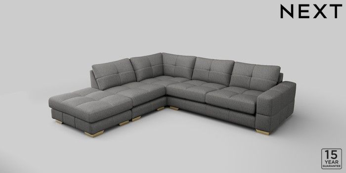 7.2.10 Brooke Deep Sit Large Open End Corner Chaise - Left Hand Tweedy Chenille Dark Grey Large Square Angle - Brushed Brass | Made Click here to use our website with more accessibility support, for example screen readers