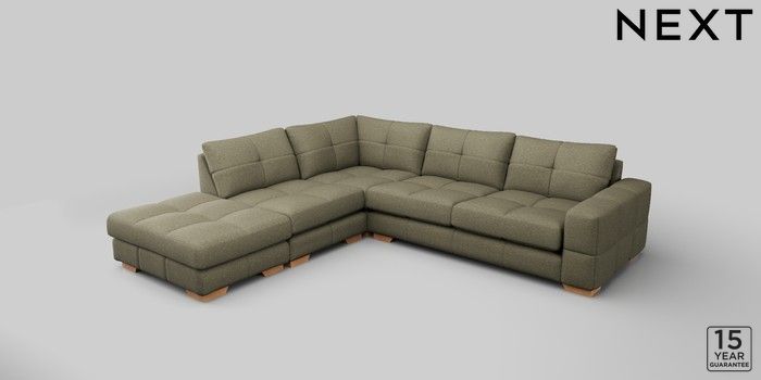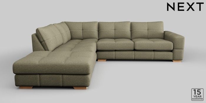 7.2.10 Brooke Deep Sit Large Open End Corner Chaise - Left Hand Tweedy Chenille Mid Moss Green Large Square Angle - Light | Made Click here to use our website with more accessibility support, for example screen readers