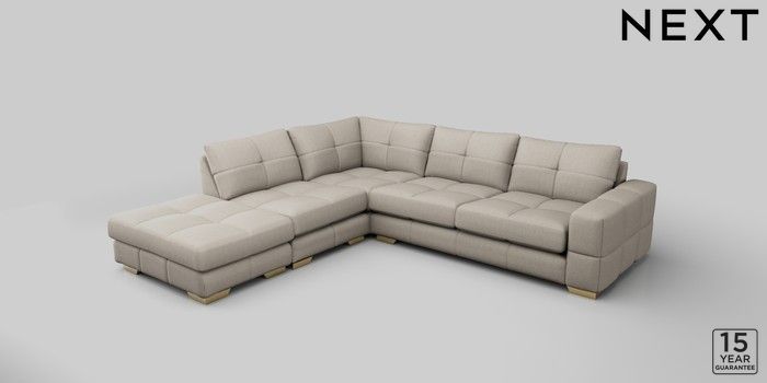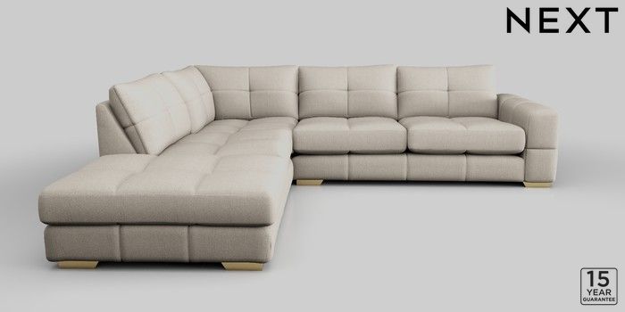 7.2.10 Brooke Deep Sit Large Open End Corner Chaise - Left Hand Tweedy Chenille Oyster Large Square Angle - Brushed Brass | Made Click here to use our website with more accessibility support, for example screen readers