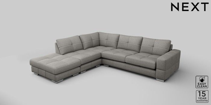 7.2.10 Brooke Deep Sit Large Open End Corner Chaise - Left Hand Woven Chenille Easy Clean Light Grey Large Square Angle - Chrome Metal | Made Click here to use our website with more accessibility support, for example screen readers