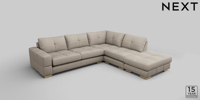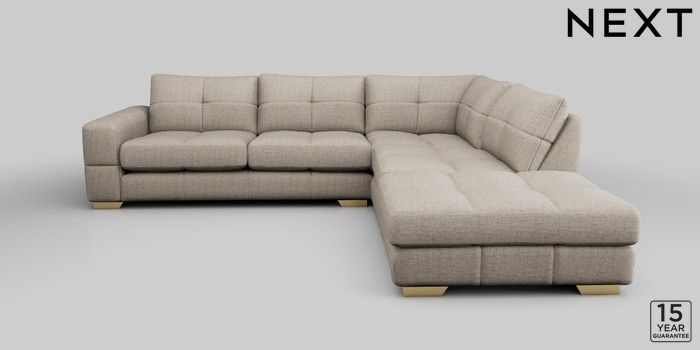 7.2.10 Brooke Deep Sit Large Open End Corner Chaise - Right Hand Chunky Weave Mid Natural Large Square Angle - Brushed Brass | Made Click here to use our website with more accessibility support, for example screen readers