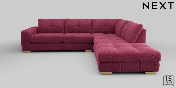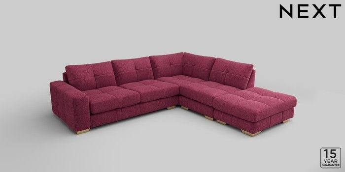 7.2.10 Brooke Deep Sit Large Open End Corner Chaise - Right Hand Cotswold Chenille Dark Raspberry Pink Large Square Angle - Brushed Brass | Made Click here to use our website with more accessibility support, for example screen readers
