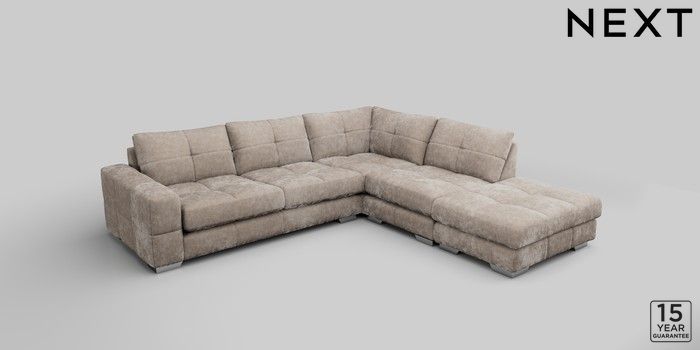 7.2.10 Brooke Deep Sit Large Open End Corner Chaise - Right Hand Distressed Velour Mid Natural Large Square Angle - Chrome Metal | Made Click here to use our website with more accessibility support, for example screen readers