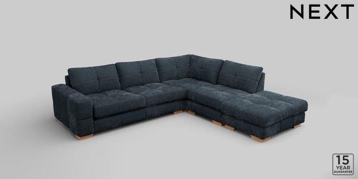 7.2.10 Brooke Deep Sit Large Open End Corner Chaise - Right Hand Distressed Velour Midnight Blue Large Square Angle - Light | Made Click here to use our website with more accessibility support, for example screen readers