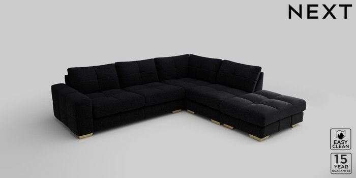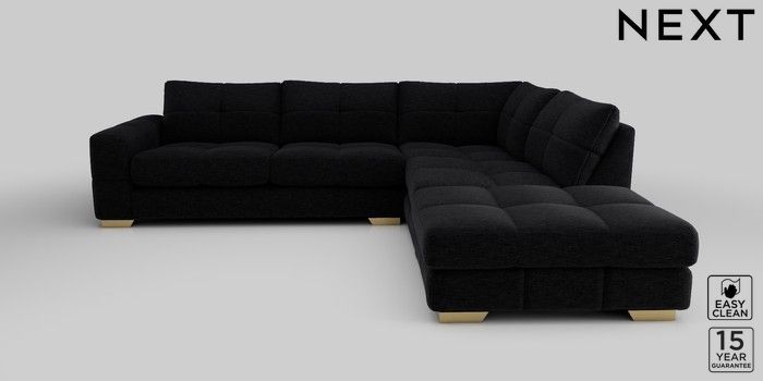 7.2.10 Brooke Deep Sit Large Open End Corner Chaise - Right Hand Fine Chenille Easy Clean Black Large Square Angle - Brushed Brass | Made Click here to use our website with more accessibility support, for example screen readers