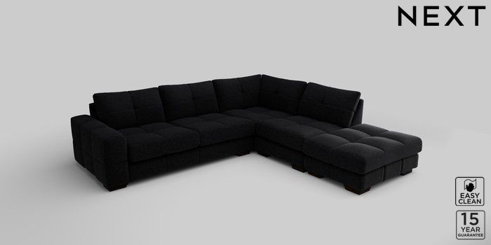 7.2.10 Brooke Deep Sit Large Open End Corner Chaise - Right Hand Fine Chenille Easy Clean Black Large Square Angle - Dark | Made Click here to use our website with more accessibility support, for example screen readers