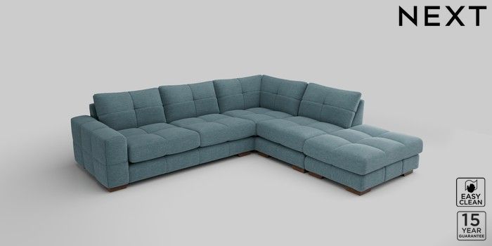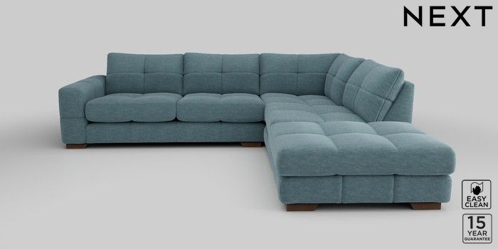7.2.10 Brooke Deep Sit Large Open End Corner Chaise - Right Hand Fine Chenille Easy Clean Mid Blue Large Square Angle - Mid | Made Click here to use our website with more accessibility support, for example screen readers