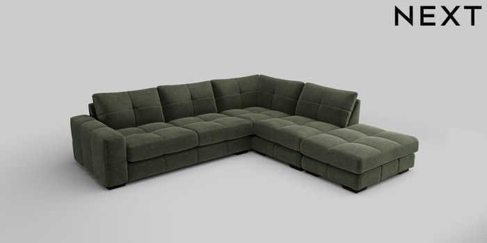7.2.10 Brooke Deep Sit Large Open End Corner Chaise - Right Hand Luxe Chenille Mid Green Large Square Angle - Dark | Made Click here to use our website with more accessibility support, for example screen readers