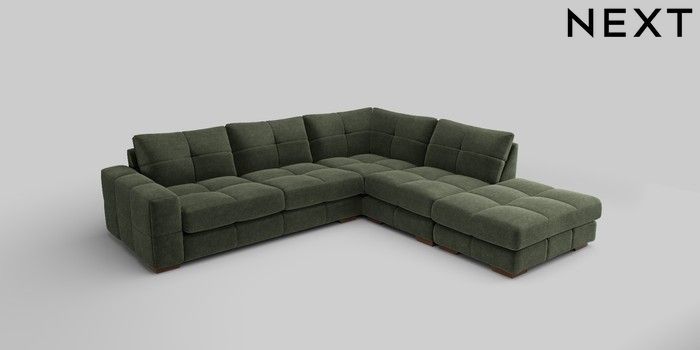 7.2.10 Brooke Deep Sit Large Open End Corner Chaise - Right Hand Luxe Chenille Mid Green Large Square Angle - Mid | Made Click here to use our website with more accessibility support, for example screen readers