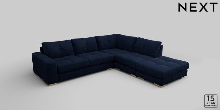 7.2.10 Brooke Deep Sit Large Open End Corner Chaise - Right Hand Luxe Chenille Navy Blue Large Square Angle - Brushed Brass | Made Click here to use our website with more accessibility support, for example screen readers