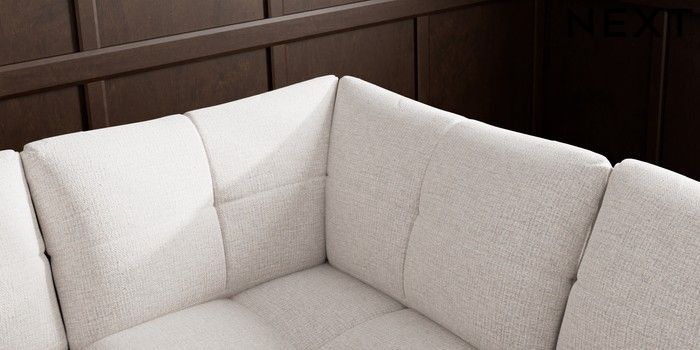 7.2.10 Brooke Deep Sit Large Open End Corner Chaise - Right Hand Multi Weave Oyster Large Square Angle - Brushed Brass | Made Click here to use our website with more accessibility support, for example screen readers