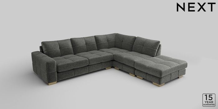 7.2.10 Brooke Deep Sit Large Open End Corner Chaise - Right Hand Plush Chenille Dark Grey Large Square Angle - Brushed Brass | Made Click here to use our website with more accessibility support, for example screen readers