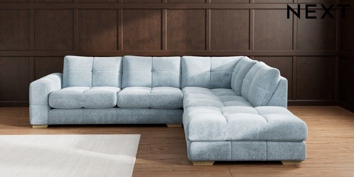 7.2.10 Brooke Deep Sit Large Open End Corner Chaise - Right Hand Plush Chenille Light Blue Large Square Angle - Light | Made Click here to use our website with more accessibility support, for example screen readers