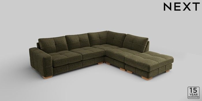 7.2.10 Brooke Deep Sit Large Open End Corner Chaise - Right Hand Plush Chenille Moss Green Large Square Angle - Light | Made Click here to use our website with more accessibility support, for example screen readers