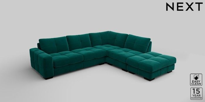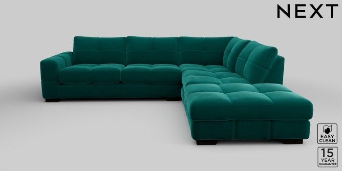 7.2.10 Brooke Deep Sit Large Open End Corner Chaise - Right Hand Plush Velvet Easy Clean Juniper Green Large Square Angle - Dark | Made Click here to use our website with more accessibility support, for example screen readers