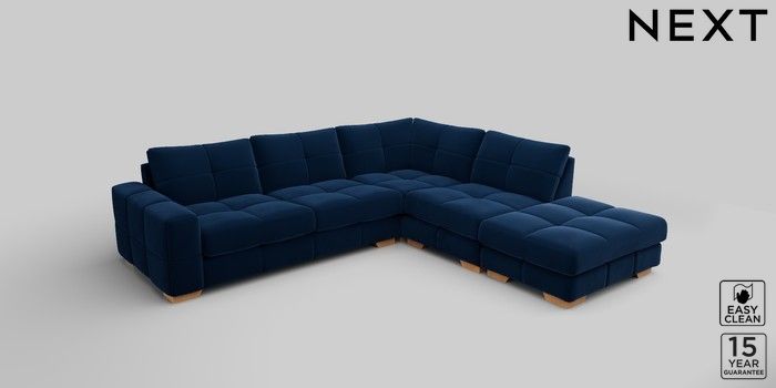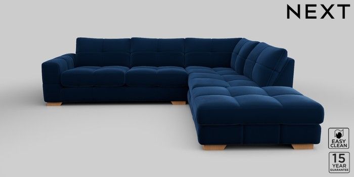 7.2.10 Brooke Deep Sit Large Open End Corner Chaise - Right Hand Plush Velvet Easy Clean Navy Blue Large Square Angle - Light | Made Click here to use our website with more accessibility support, for example screen readers