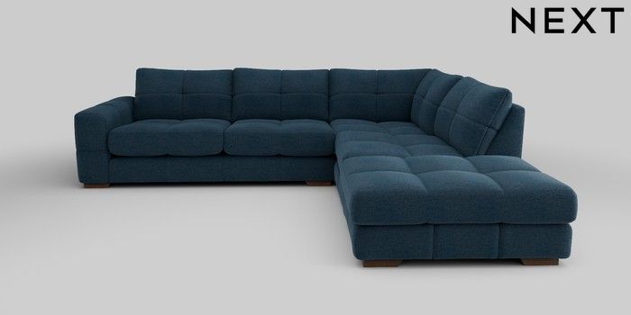 7.2.10 Brooke Deep Sit Large Open End Corner Chaise - Right Hand Ripple Chenille Dark Blue Large Square Angle - Mid | Made Click here to use our website with more accessibility support, for example screen readers