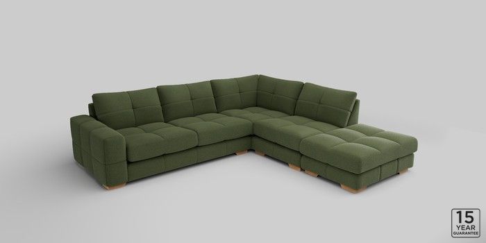 7.2.10 Brooke Deep Sit Large Open End Corner Chaise - Right Hand Ripple Chenille Mid Moss Green Large Square Angle - Light | Made Click here to use our website with more accessibility support, for example screen readers