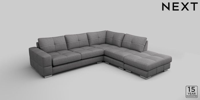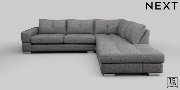 7.2.10 Brooke Deep Sit Large Open End Corner Chaise - Right Hand Studio Chenille Mid Grey Large Square Angle - Chrome Metal | Made Click here to use our website with more accessibility support, for example screen readers