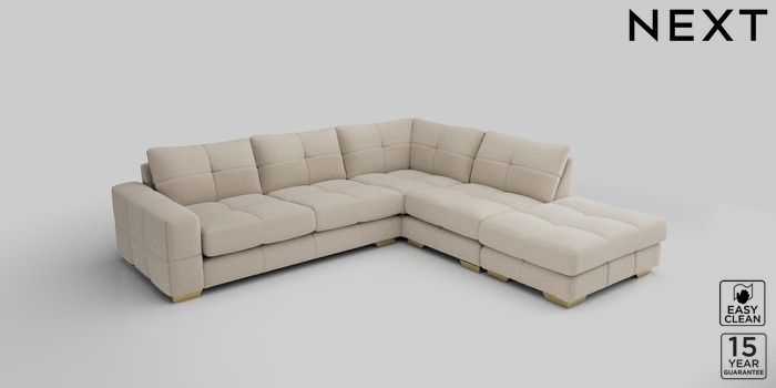 7.2.10 Brooke Deep Sit Large Open End Corner Chaise - Right Hand Tweedy Blend Easy Clean Oyster Large Square Angle - Brushed Brass | Made Click here to use our website with more accessibility support, for example screen readers