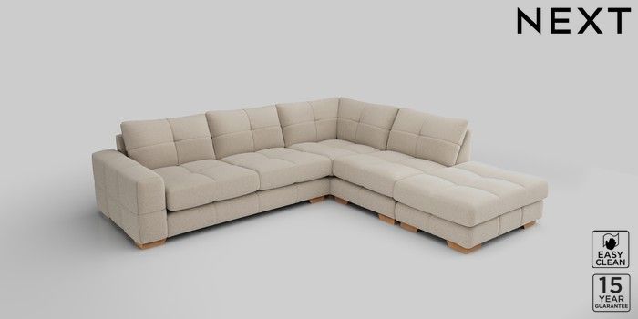 7.2.10 Brooke Deep Sit Large Open End Corner Chaise - Right Hand Tweedy Blend Easy Clean Oyster Large Square Angle - Light | Made Click here to use our website with more accessibility support, for example screen readers