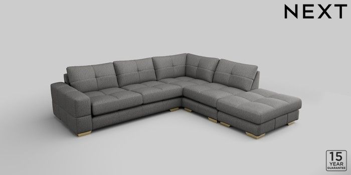 7.2.10 Brooke Deep Sit Large Open End Corner Chaise - Right Hand Tweedy Chenille Dark Grey Large Square Angle - Brushed Brass | Made Click here to use our website with more accessibility support, for example screen readers