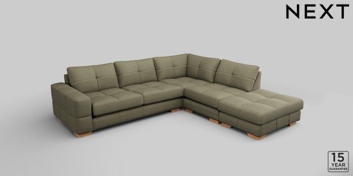 7.2.10 Brooke Deep Sit Large Open End Corner Chaise - Right Hand Tweedy Chenille Mid Moss Green Large Square Angle - Light | Made Click here to use our website with more accessibility support, for example screen readers