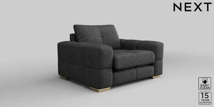 7.2.10 Brooke Deep Sit Snuggle Boucle Weave Easy Clean Charcoal Grey Large Square Angle - Brushed Brass | Made Click here to use our website with more accessibility support, for example screen readers