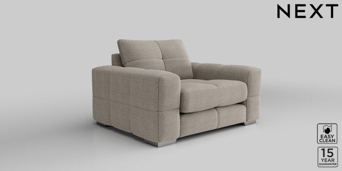 7.2.10 Brooke Deep Sit Snuggle Chunky Boucle Easy Clean Dove Large Square Angle - Chrome Metal | Made Click here to use our website with more accessibility support, for example screen readers