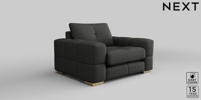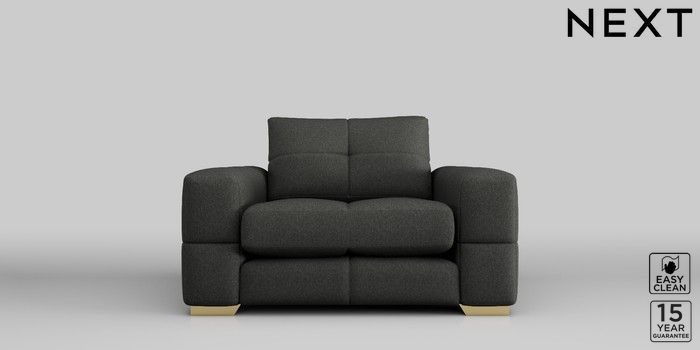 7.2.10 Brooke Deep Sit Snuggle Tweedy Blend Easy Clean Charcoal Grey Large Square Angle - Brushed Brass | Made Click here to use our website with more accessibility support, for example screen readers