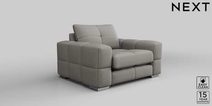 7.2.10 Brooke Deep Sit Snuggle Woven Chenille Easy Clean Light Grey Large Square Angle - Chrome Metal | Made Click here to use our website with more accessibility support, for example screen readers