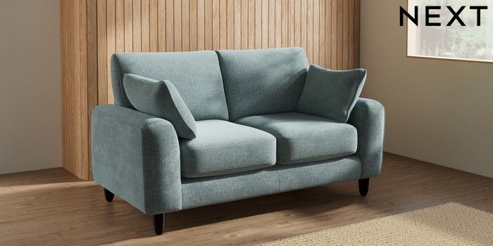 7.2.10 Campbell 2 Seater Sofa Chunky Chenille Light Teal Green High Leg - Dark | Made Click here to use our website with more accessibility support, for example screen readers