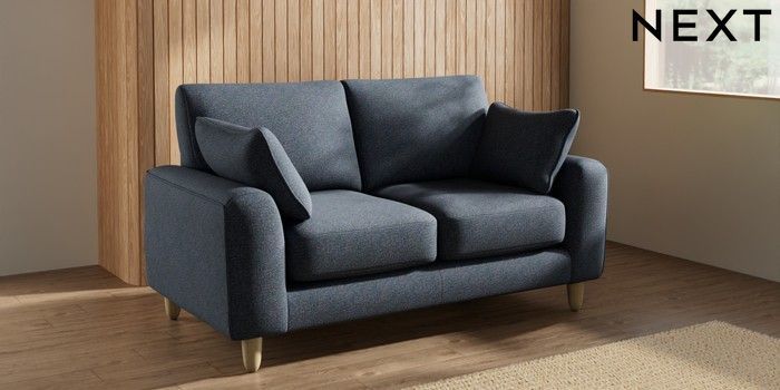 7.2.10 Campbell 2 Seater Sofa Tweedy Chenille Navy Blue High Leg - Light | Made Click here to use our website with more accessibility support, for example screen readers