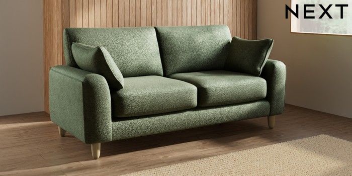 7.2.10 Campbell 3 Seater Small Sofa Boucle Chenille Dark Moss Green High Leg - Light | Made Click here to use our website with more accessibility support, for example screen readers