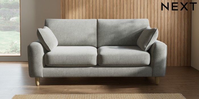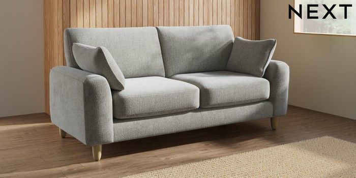 7.2.10 Campbell 3 Seater Small Sofa Chunky Chenille Light Grey High Leg - Light | Made Click here to use our website with more accessibility support, for example screen readers