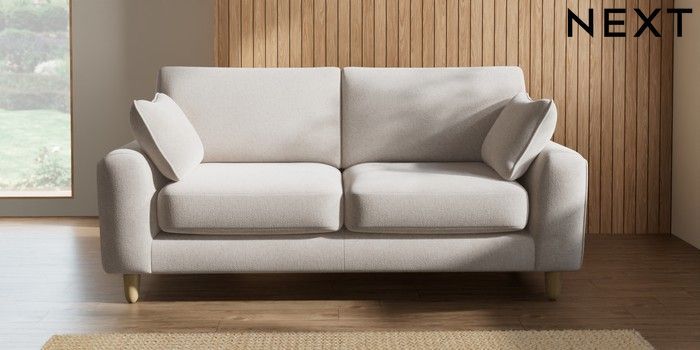 7.2.10 Campbell 3 Seater Small Sofa Chunky Chenille Oyster High Leg - Light | Made Click here to use our website with more accessibility support, for example screen readers