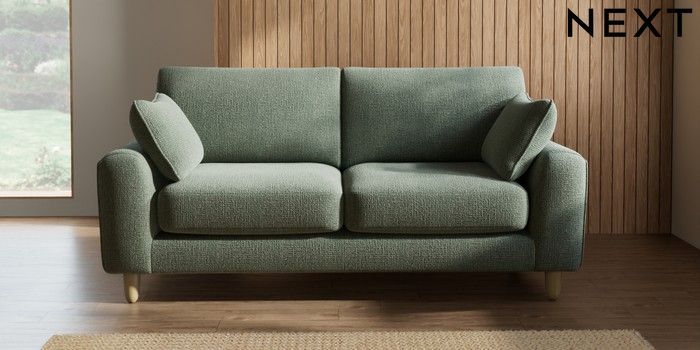 7.2.10 Campbell 3 Seater Small Sofa Chunky Texture Mid Forest Green High Leg - Light | Made Click here to use our website with more accessibility support, for example screen readers