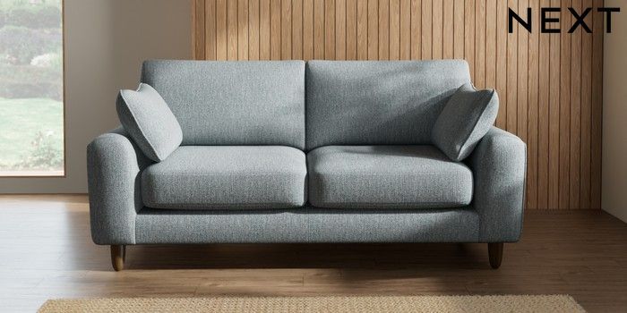 7.2.10 Campbell 3 Seater Small Sofa Chunky Weave Mid Blue High Leg - Mid | Made Click here to use our website with more accessibility support, for example screen readers