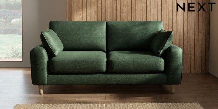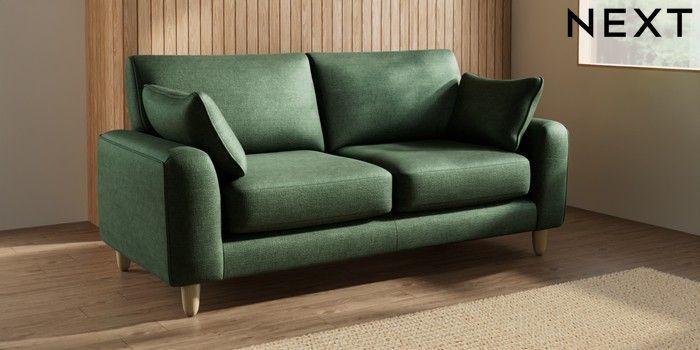 7.2.10 Campbell 3 Seater Small Sofa Luxe Chenille Dark Green High Leg - Light | Made Click here to use our website with more accessibility support, for example screen readers