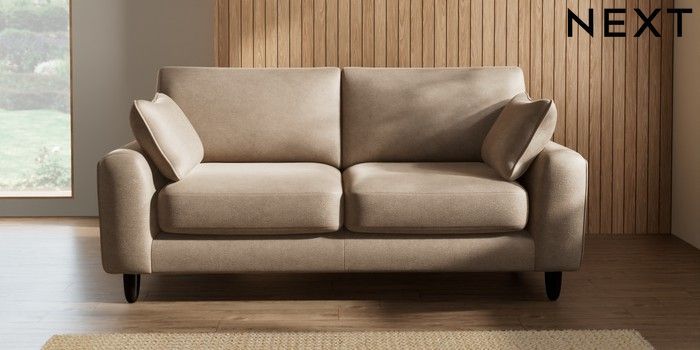 7.2.10 Campbell 3 Seater Small Sofa Luxe Chenille Mid Camel Beige High Leg - Dark | Made Click here to use our website with more accessibility support, for example screen readers