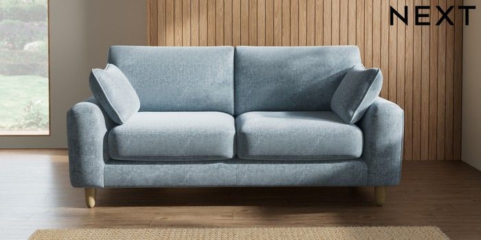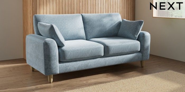 7.2.10 Campbell 3 Seater Small Sofa Plush Chenille Light Blue High Leg - Light | Made Click here to use our website with more accessibility support, for example screen readers