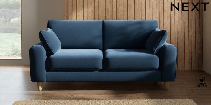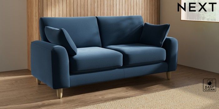 7.2.10 Campbell 3 Seater Small Sofa Plush Velvet Easy Clean Airforce Blue High Leg - Light | Made Click here to use our website with more accessibility support, for example screen readers