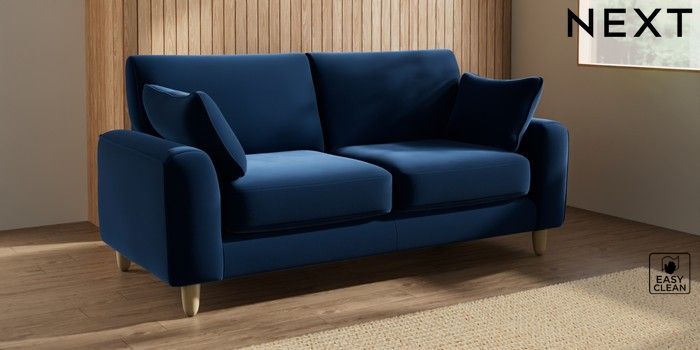 7.2.10 Campbell 3 Seater Small Sofa Plush Velvet Easy Clean Navy Blue High Leg - Light | Made Click here to use our website with more accessibility support, for example screen readers