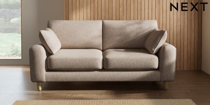 7.2.10 Campbell 3 Seater Small Sofa Tweedy Chenille Mid Natural High Leg - Light | Made Click here to use our website with more accessibility support, for example screen readers