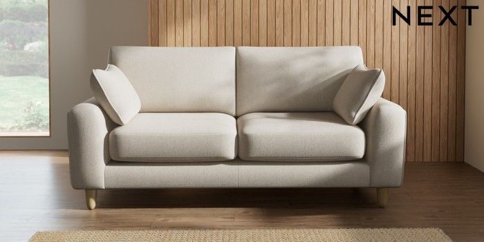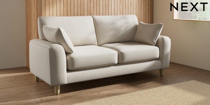 7.2.10 Campbell 3 Seater Small Sofa Tweedy Chenille Oyster High Leg - Light | Made Click here to use our website with more accessibility support, for example screen readers