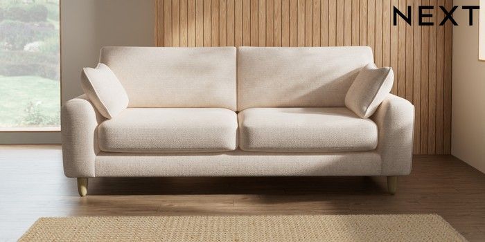 7.2.10 Campbell 3 Seater Sofa Boucle Chenille Oyster High Leg - Light | Made Click here to use our website with more accessibility support, for example screen readers